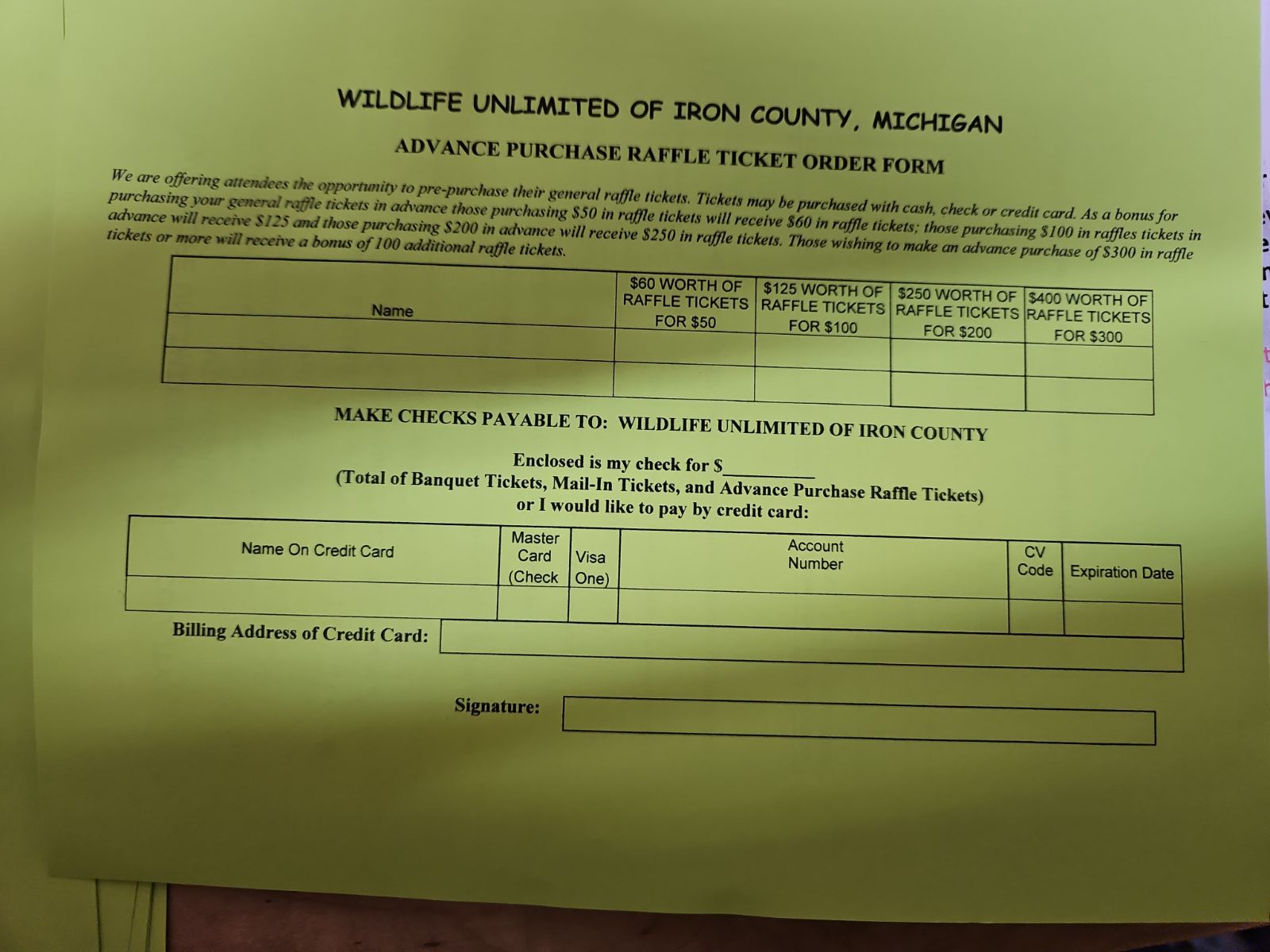 This includes your meal and a chance at one of the many door prizes.