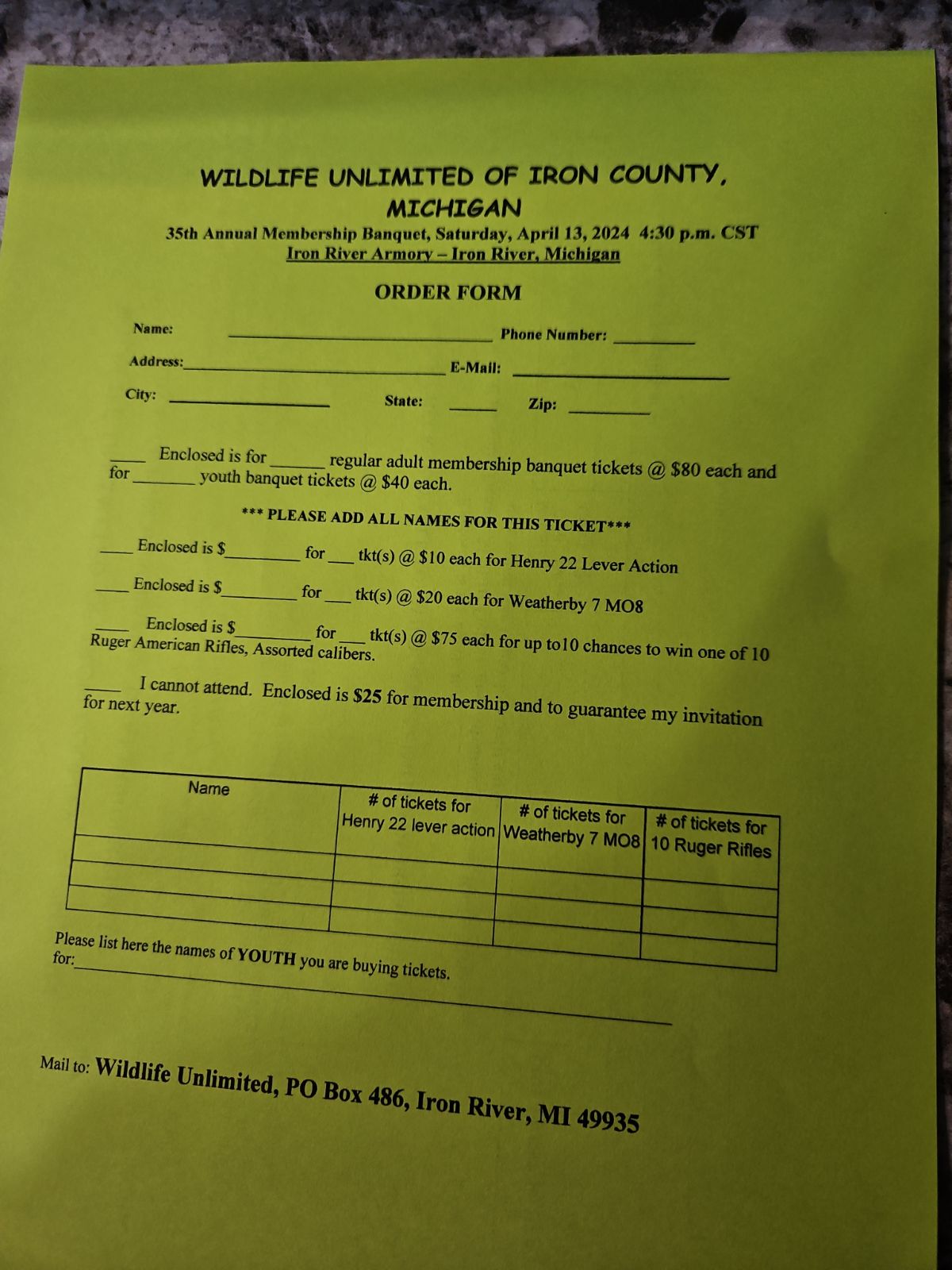 This years membership banquet will be April 13, 2024